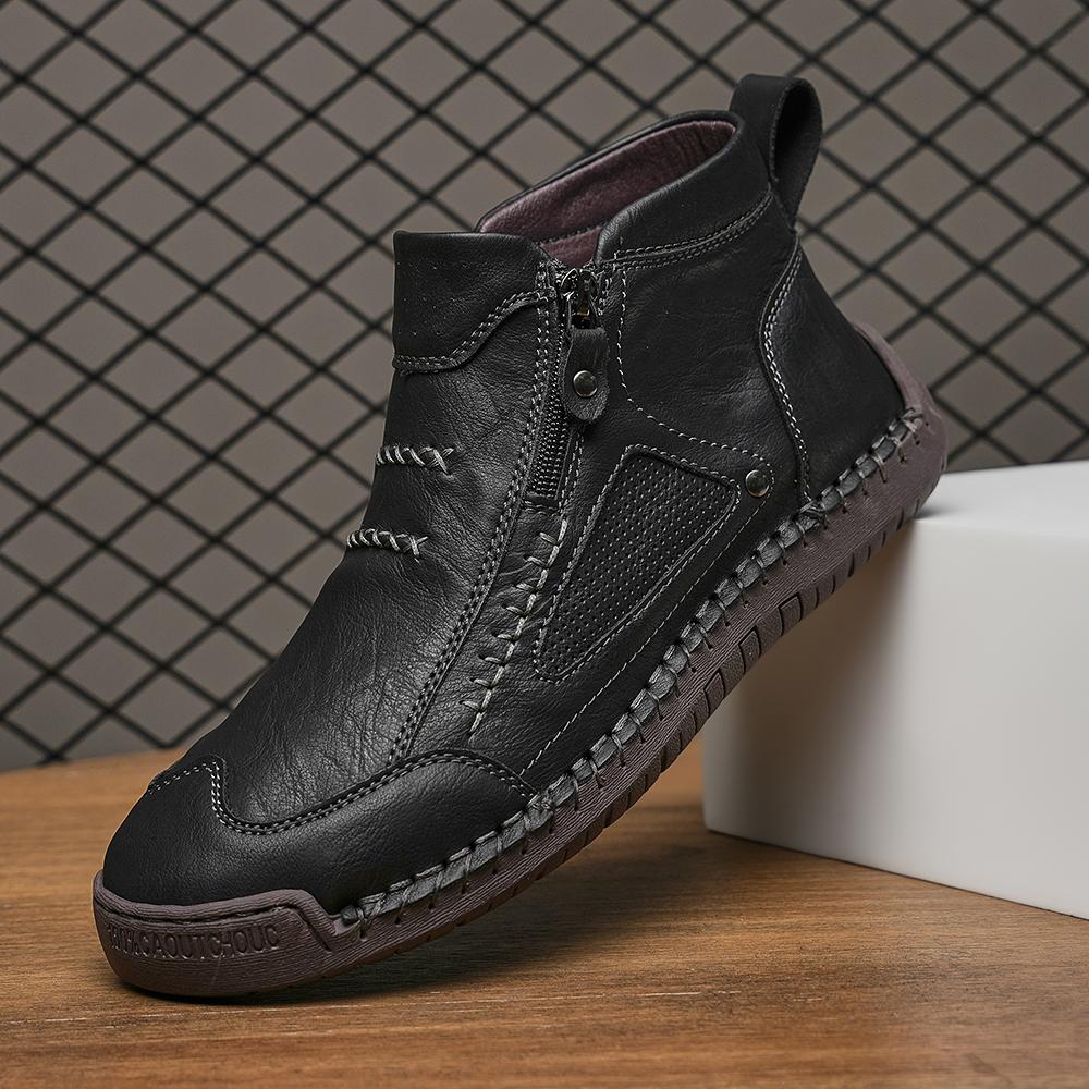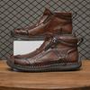 Men's Leather Ankle Boots Outdoor Casual Boots Casual Soft Sneakers Flat Lace-up Boots Handmade Large Size Mens Shoes Botines