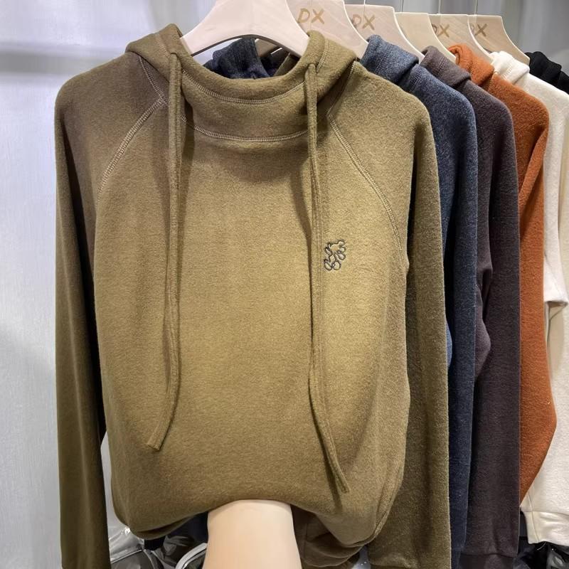 New Autumn-winter Long-sleeved Top with Double-layered Fleece and Hooded Inner Layer, Loose-fitting Embroidered Hoodie for Women