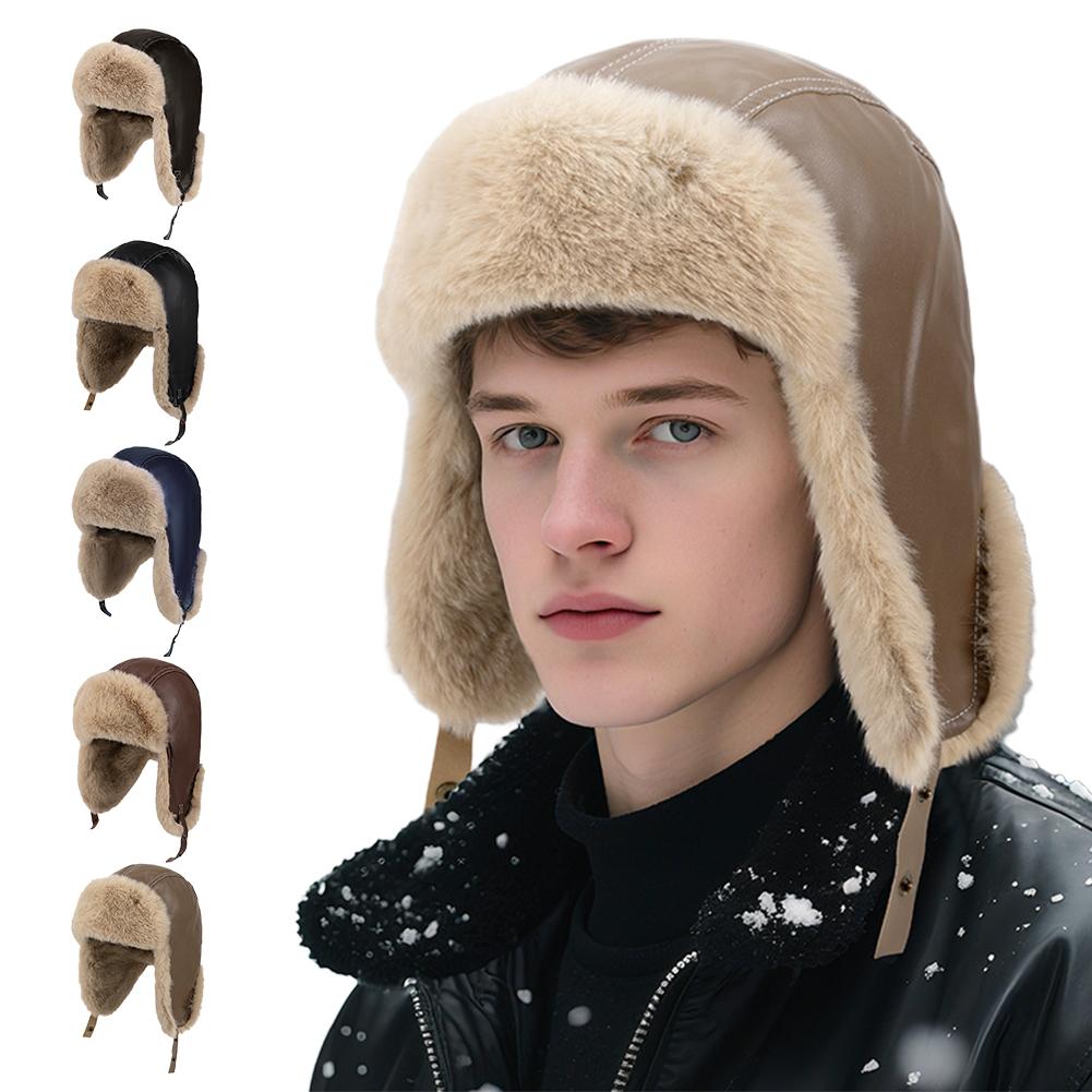 Winter Thick Warm Ushanka Hat For Men Women's Pilot Aviator Bomber Trapper Hat Faux Fur Leather Snow Cap with Ear Flaps