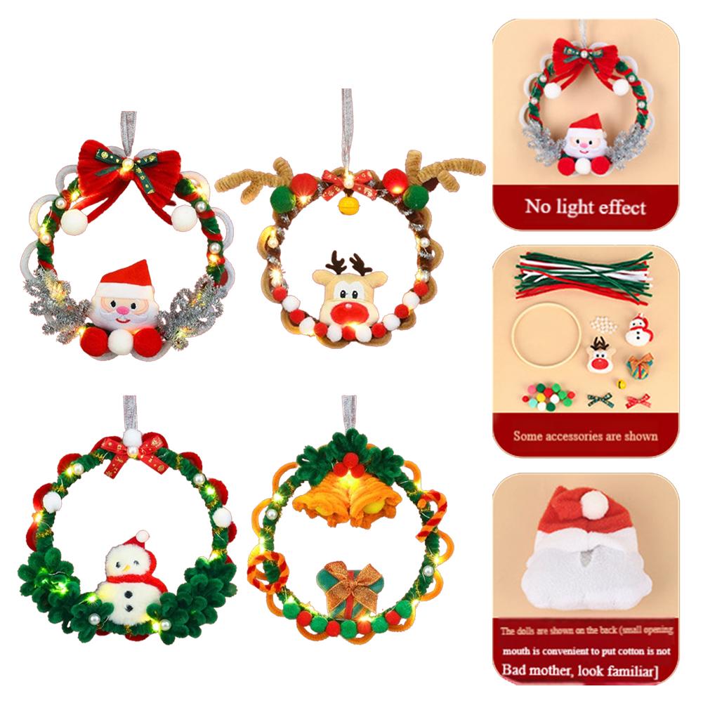Snowman Twisting Sticks Wreath Material Pack Bell Pipe Cleaners Wreath with Light Chenille Stems Garland with Bow for Home Decor