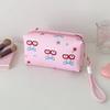 Cute Fashion Striped Apple Cherry Handheld Makeup Bag Korean Girl Large Capacity Lipstick Storage Bag Student Stationery Pen Bag