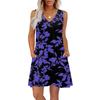 Women's Summer Dresses Loose Fit Printed V Neck Sleeveless Sundresses Beach Hawaiian Dress With Pockets