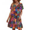 gender: female Material: Polyester Sleeve Length:Short Pattern Type: Printing Neckline: V-neck Length: knee length Decoration: None