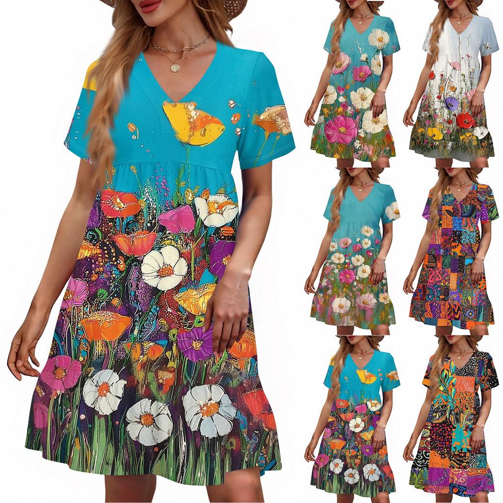 Women's Casual Fashion V-Neck Short Sleeve Floral Print Dress Women's Casual Fashion V-Neck Short Sleeve Floral Print Dress We can guarantee that the overall shown in the photos is accurate, however styles may vary when worn. This depends other physical variables, such as individual size, size, proportions of limbs, height, etc.