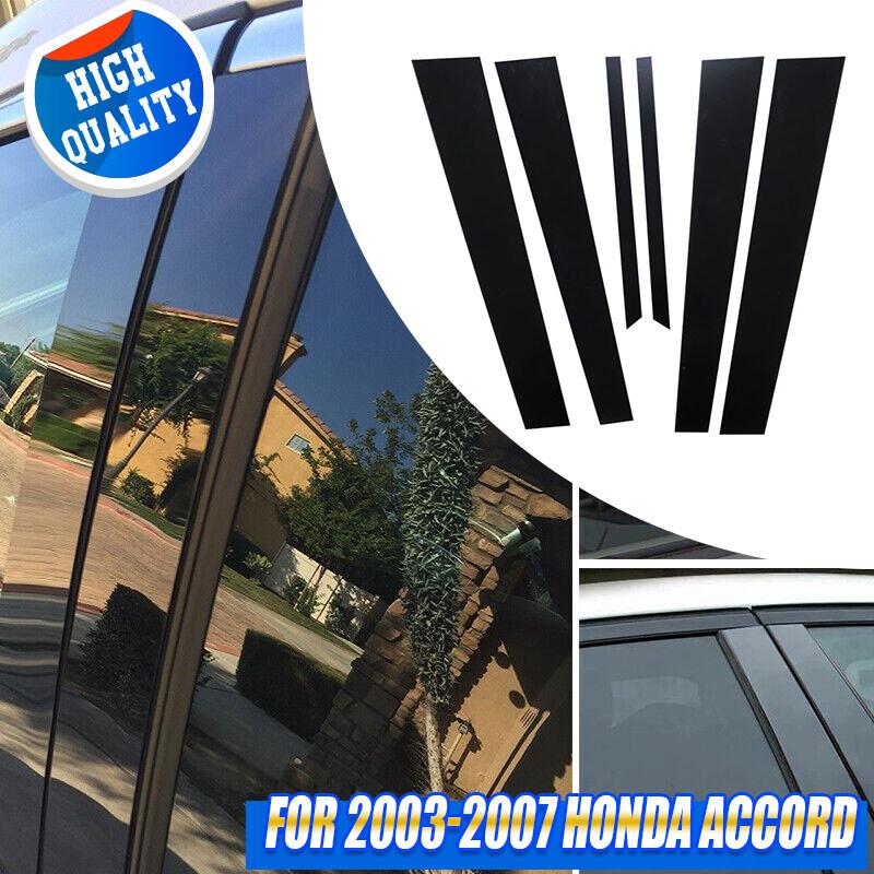 6PCS Gloss Black Window Door Pillar Posts Trims For Honda Accord 2003-2007 Sedan