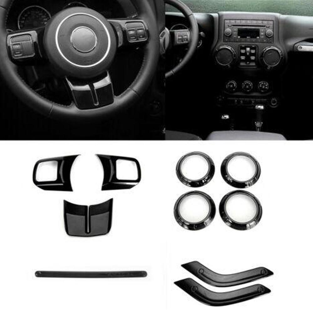 10pcs Interior Decoration Cover Trim For Jeep Wrangler JK 2Door 2011-2017 Black