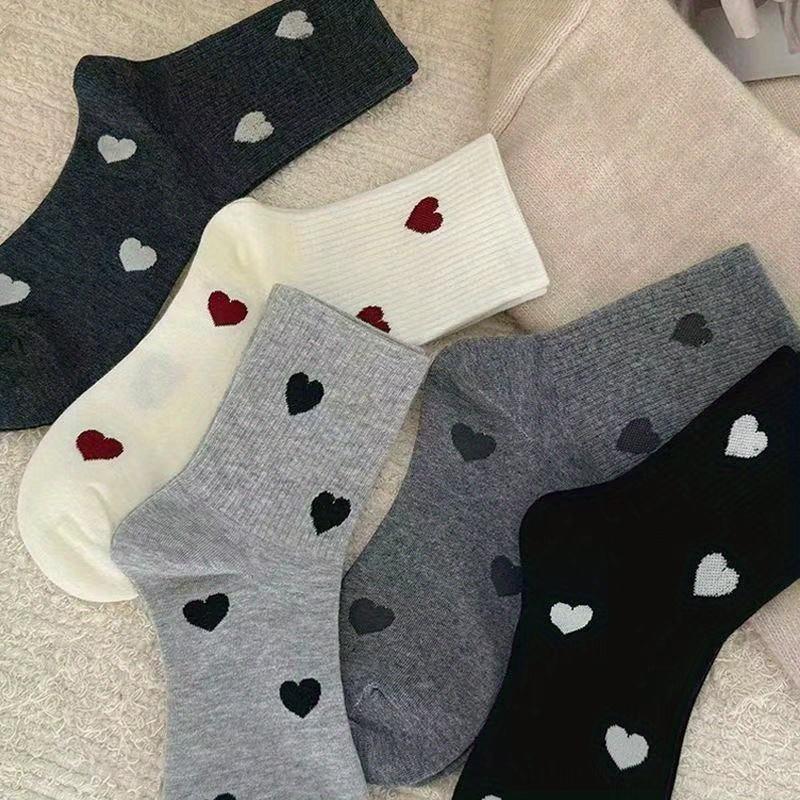 5pairs Women'S Thickened Warm Mid-Calf Socks with Heart Pattern – Black, Red, Gray – Machine Washable, Ideal for Everyday Wear, Formal Shoes