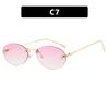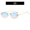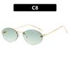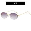 Letter F Frameless Trim Sunglasses Oval Retro Small FrameTrendy Holiday Travelling Sunglasses Women Fashion Metal Sunglasses