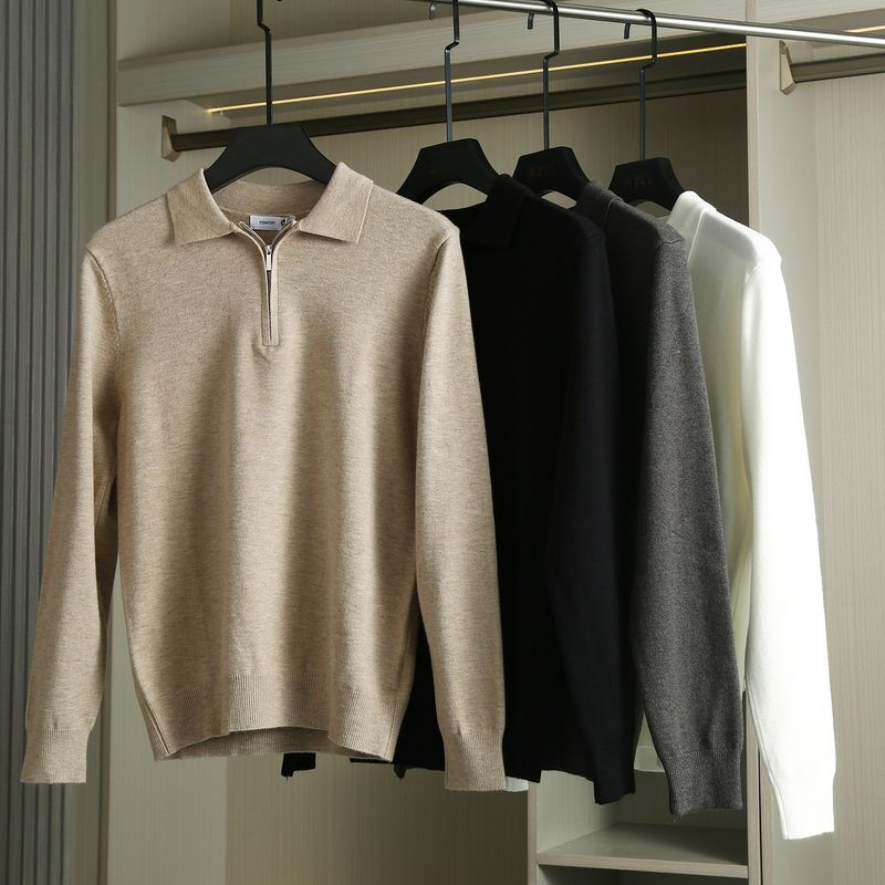 Men's Business Casual Knit Sweater with Half-Zip and Turn-Down Collar, Minimalist Style, Light Luxury, Export Surplus