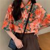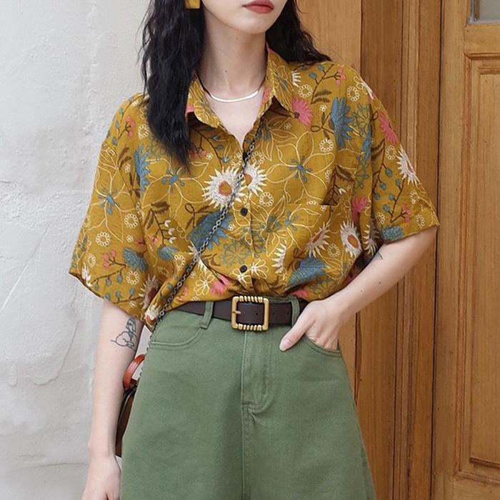 Loose Fit Printed Shirt Women‘s - Short Sleeve Summer Casual Blouse Top