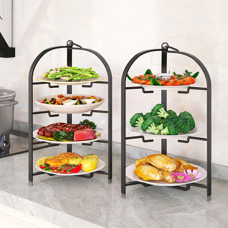 Kitchen Multi-functional Vegetable Tray Rack No Punching, Foldable Wall-mounted Storage Multi-layer Side Dish Rack
