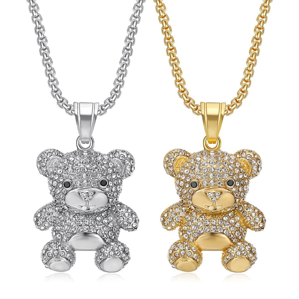 Hot-selling Hip-Hop Jewelry Titanium Steel Gold-plated Diamond-studded Bear Pendant Necklace