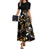 Women's Fashion Casual Belted Round Neck Short Sleeve Floral Patchwork Elegant Dresses