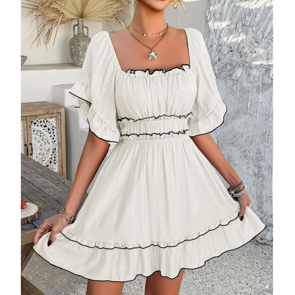 Women's Casual Loose Black Fungus Edge Short Sleeved Dress Short Skirt Short Skirt