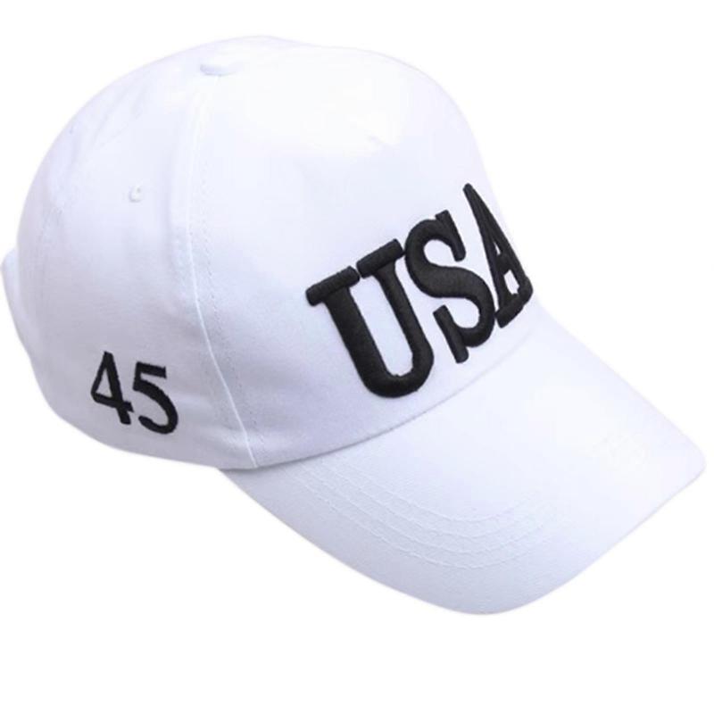Unisex Outdoor President 2020 Campaign Baseball Cap USA 45 American Flag 3D Embroidered Adjustable for Snapback Trucker White