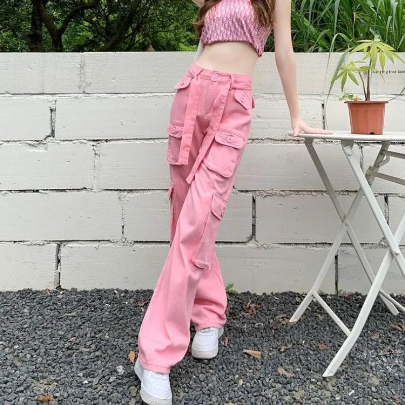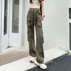 Fashion Multi-Pocket Casual Cargo Pants Female Clothing Wide Leg Spring Autumn Safari Style High Waist Drawstring Basic Trousers