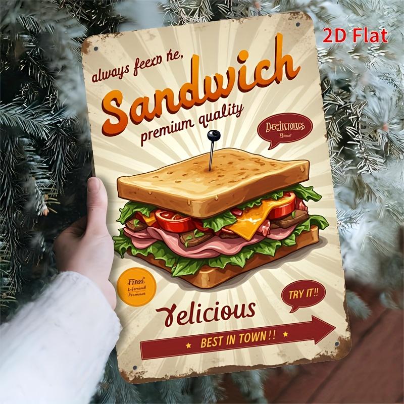 Vintage Sandwich Shop Metal Tin Sign HeavyDuty Iron Retro Diner Wall Decor with Sandwich Board Design Garage for Man Cave