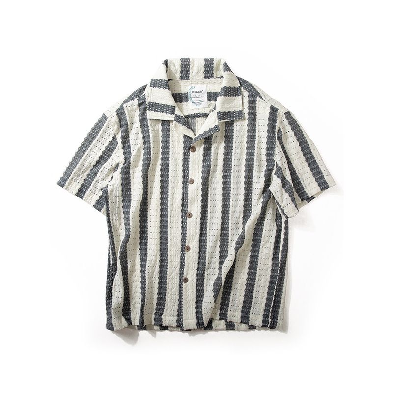 Stripe Short Sleeve Shirts Men's Loose Casual Half Sleeve Shirt Summer Relaxed Feeling Cuban Collar Retro Trendy Top
