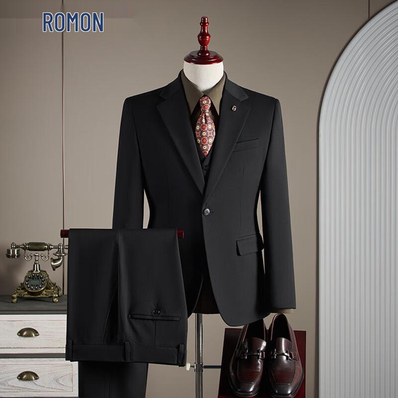 ROMON Men's Slim-Fit Business Formal 3-Piece Suit