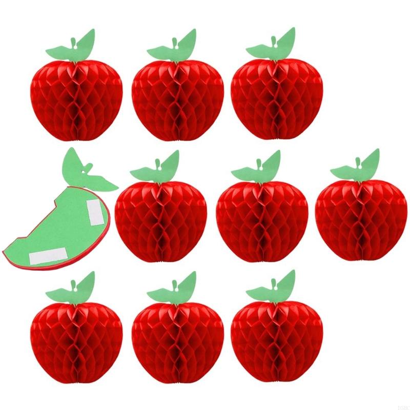 Festival Apples Honeycomb Hanging Decorations Pack Of 10 Bright Red Paper Craft For Holiday Wedding Classroom Seasonal Decors