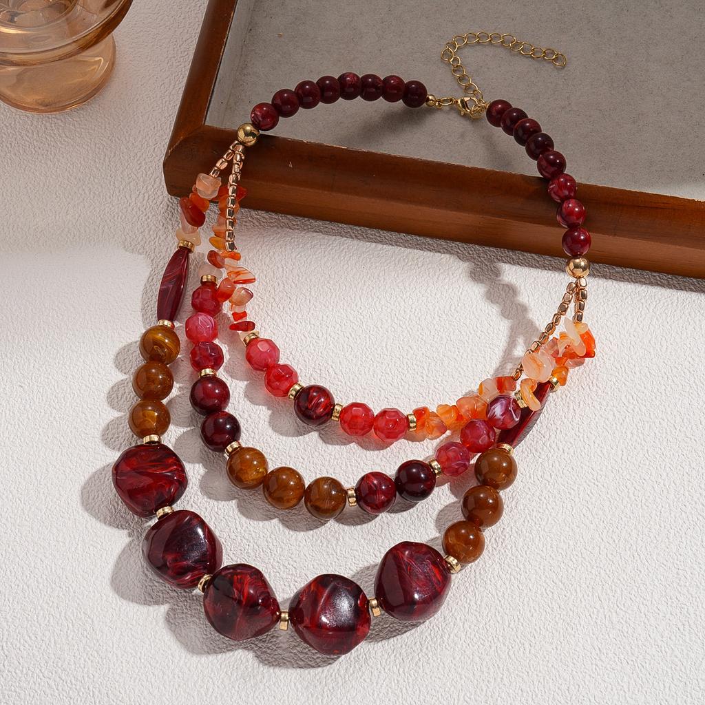Acrylic Stone Irregular Beaded Round Multi-layer Sweater Chain Exaggerated Necklace