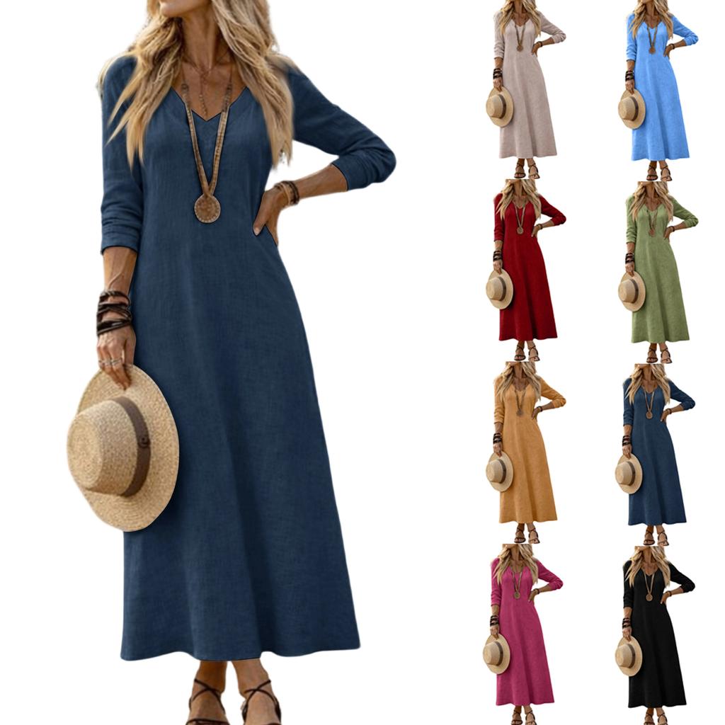 Dress For Women Long Boho Beach Dress Elegant Maxi Dress V-Neck Long Sleeve Dress
