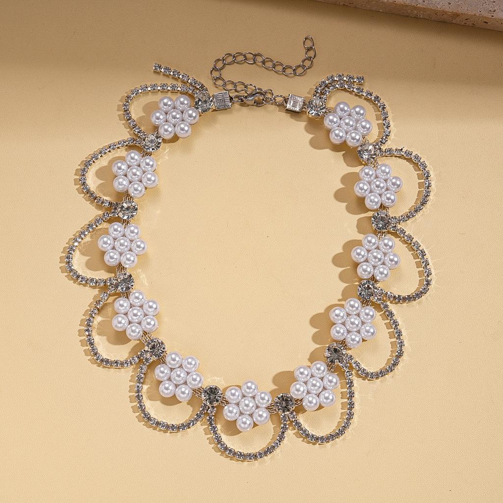 Imitation Pearl Diamond Flower Fringed Neck Chain Exquisite Fashion Collarbone Chain Light Luxury Necklace
