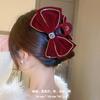 New Year Red Autumn and Winter Velvet Bead Diamond Bow Hairpin Sweet Internet Celebrity Head Senior Hair Accessories