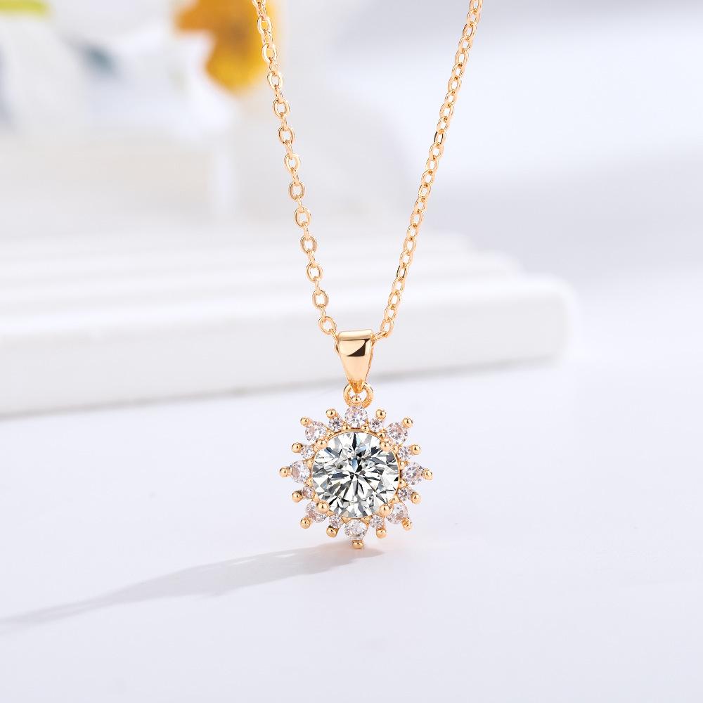 New Seiko Full Diamond Sunflower Necklace, Light Luxury Ins Wind Collarbone Chain