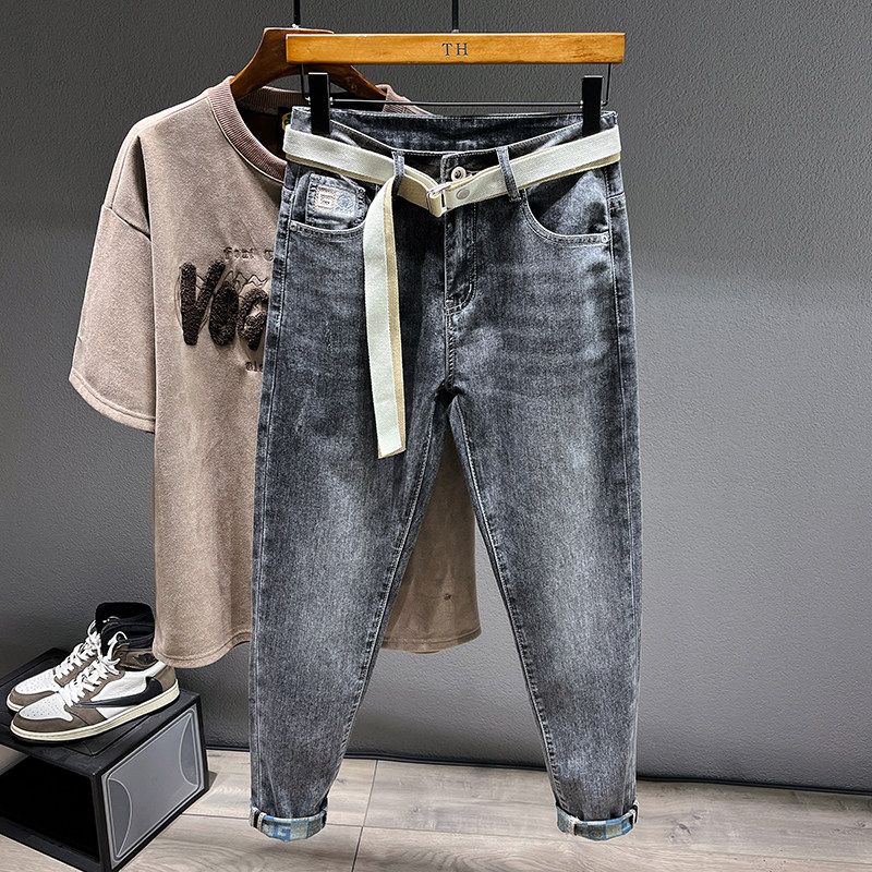Men's Gray Denim Jeans, 2024 New Model, Straight Fit, Slim Fit, Casual Long Pants for Spring and Autumn