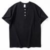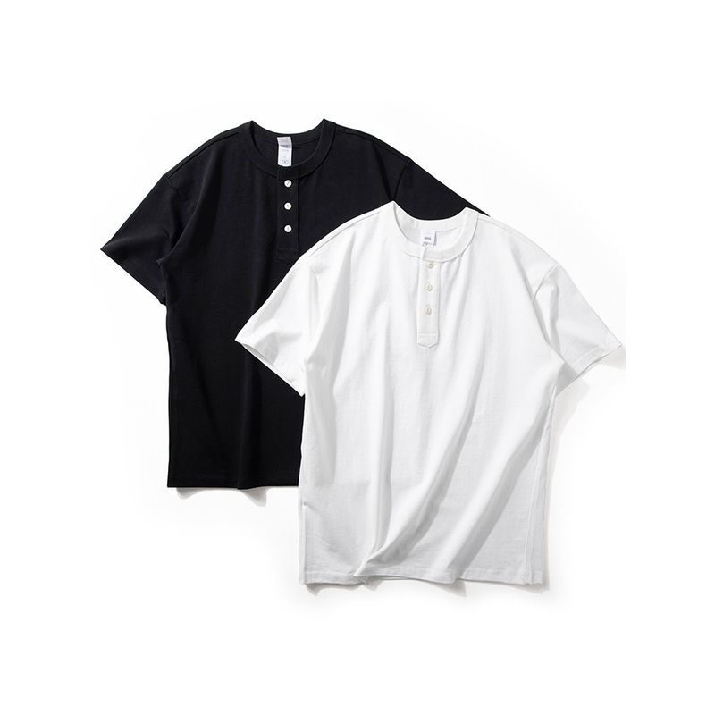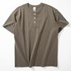 American-Style 300g Heavyweight Short-Sleeve T-Shirt for Men, Summer Casual Solid Color Versatile Top, Stylish Henley Collar Pure Cotton Half-Sleeve