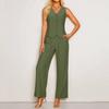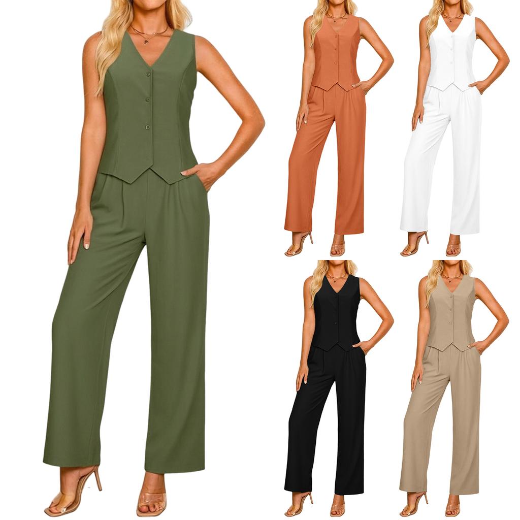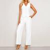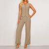 Women's Casual Summer Linen Two-Piece Sleeveless Top High Waist Trousers Beach Vacation Set