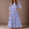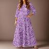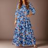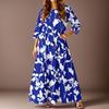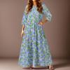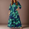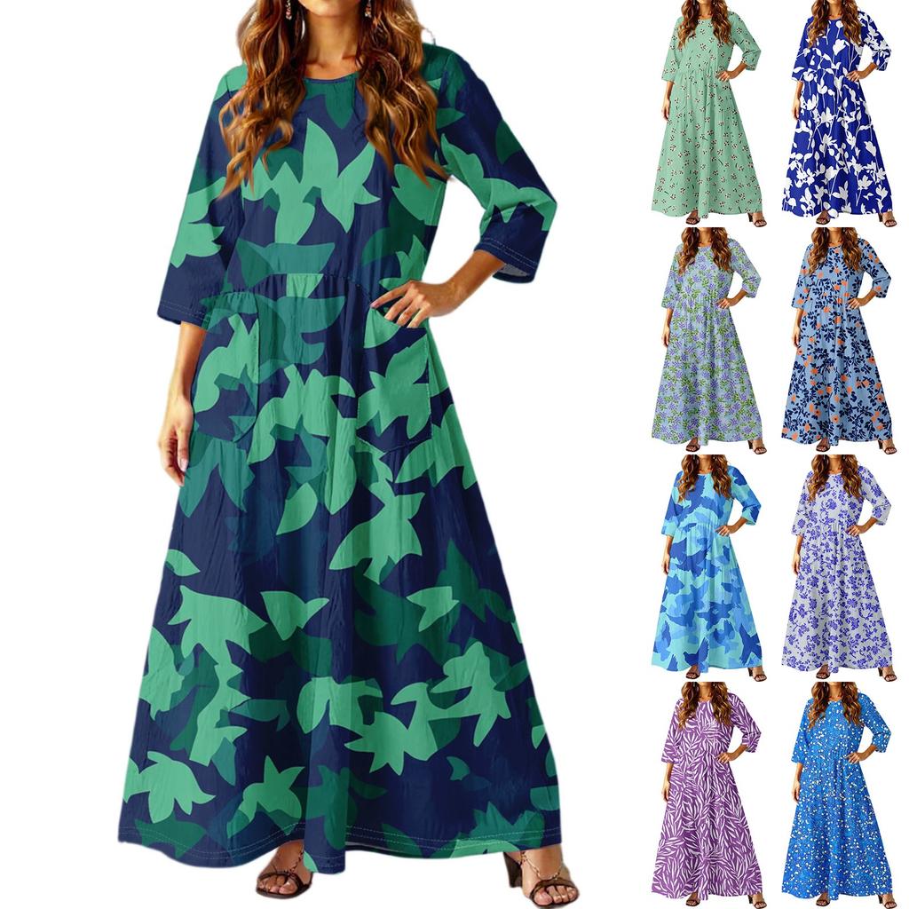 Women's Casual Fashion Floral Print Three-quarter Sleeve Long Dress With Pockets