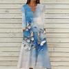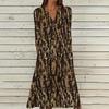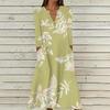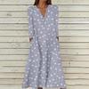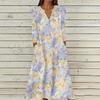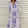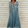 Women's Summer Casual V-Neck Button Vintage Floral Print Three-quarter Sleeve Long Dress With Pockets