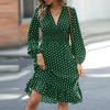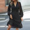 Women's Fashionable Waist Cinching Slimming Polka Dot Printed Long Sleeved Western- Dress