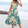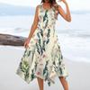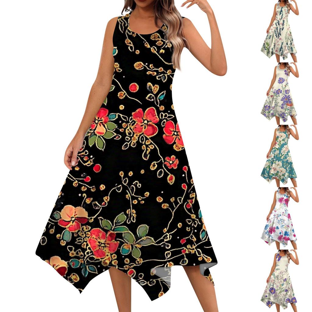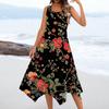 Women's Casual Fashion Round Neck Sleeveless Floral Print Irregular Hem Midi Dress