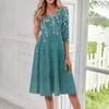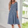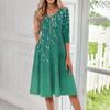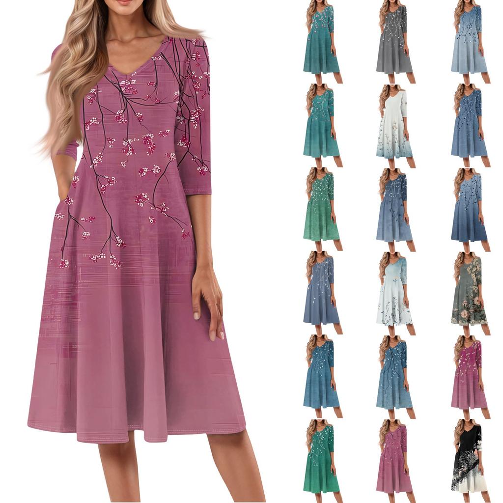 Women's Casual Fashion V Neck Three Quarter Sleeve Print Midi Dress Women's Fashion Casual V Neck 3/4 sleeve Sleeves Dress