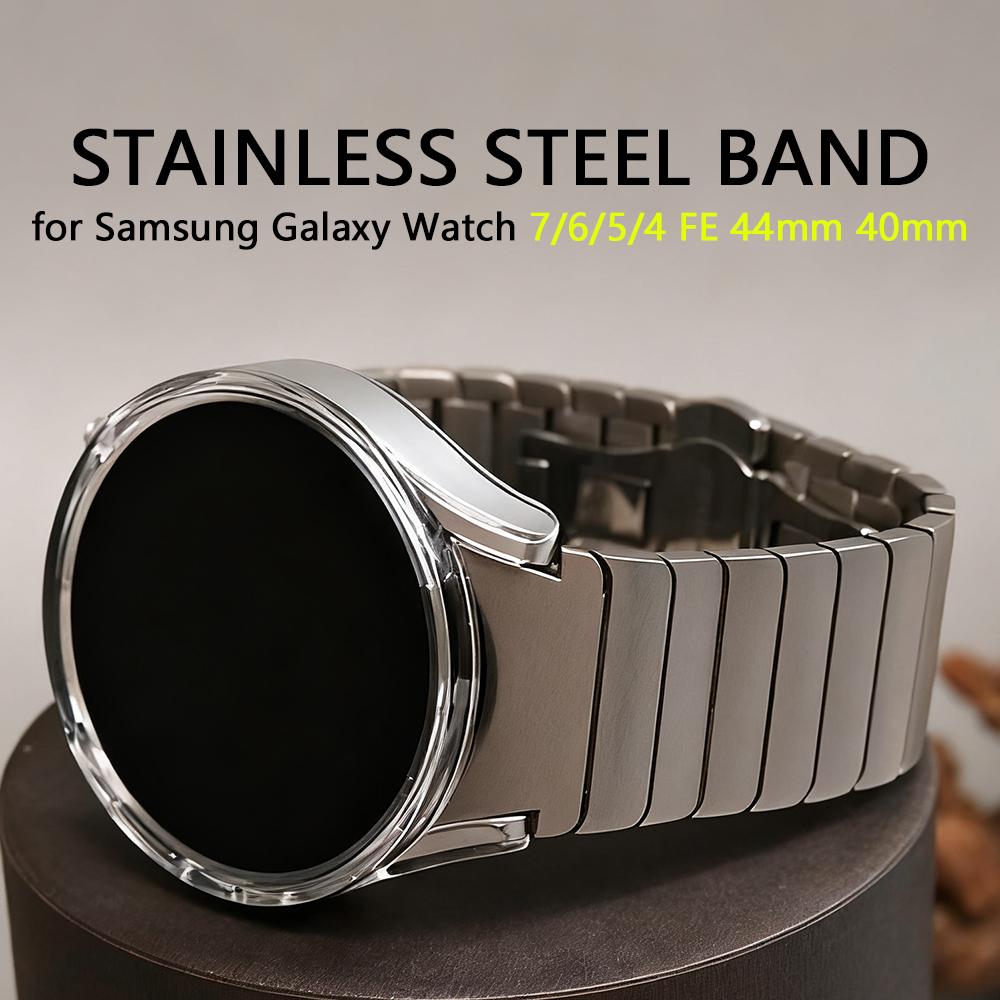 Stainless Steel Band PC Case for Samsung Galaxy Watch 7 6 44mm 40mm Men Metal Strap for Samsung Galaxy Watch 6 Classic 47mm 43mm