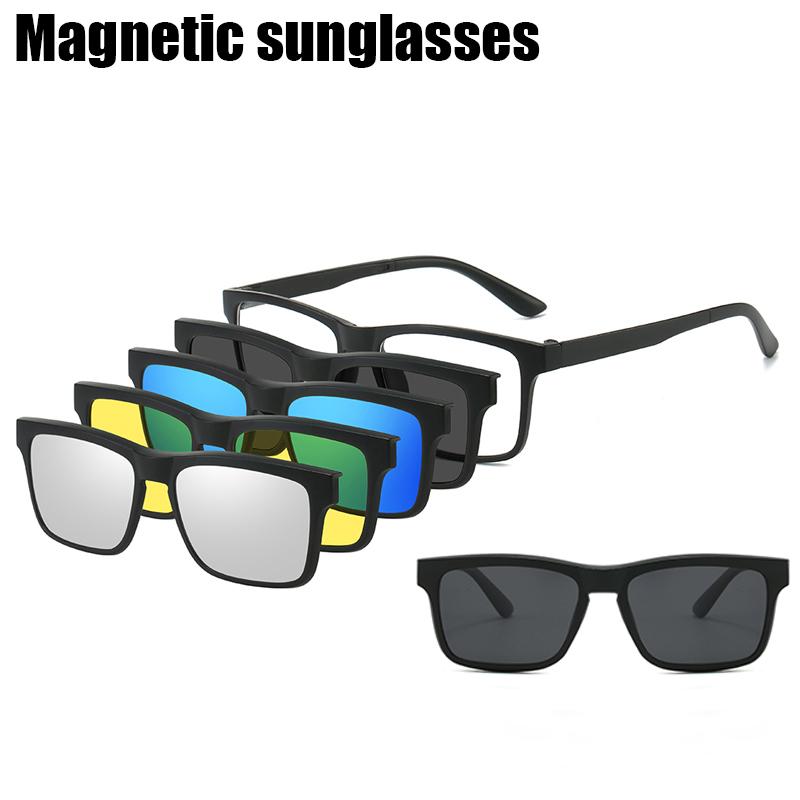 PC 5In 1 New Style Magnet Clip On Glasses Frame Trend Fishing Driving Sunglasses For Men Optical Computer Glasses UV400