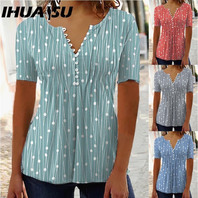 IHUASU Women's Fashion Casual Short Sleeve V Neck Blouses & Shirts
