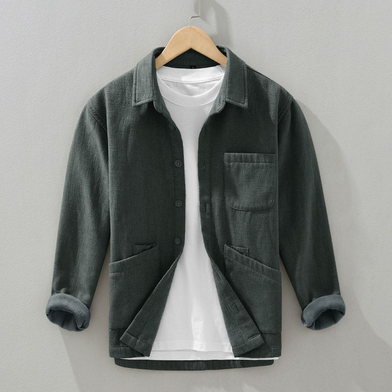 With Tags Removed, Turn-Down Collar, Fleece-Lined, Ramie Long-Sleeve Men's Winter Cotton-Linen Japanese-Style Casual Shirt, High-End Feel Jacket