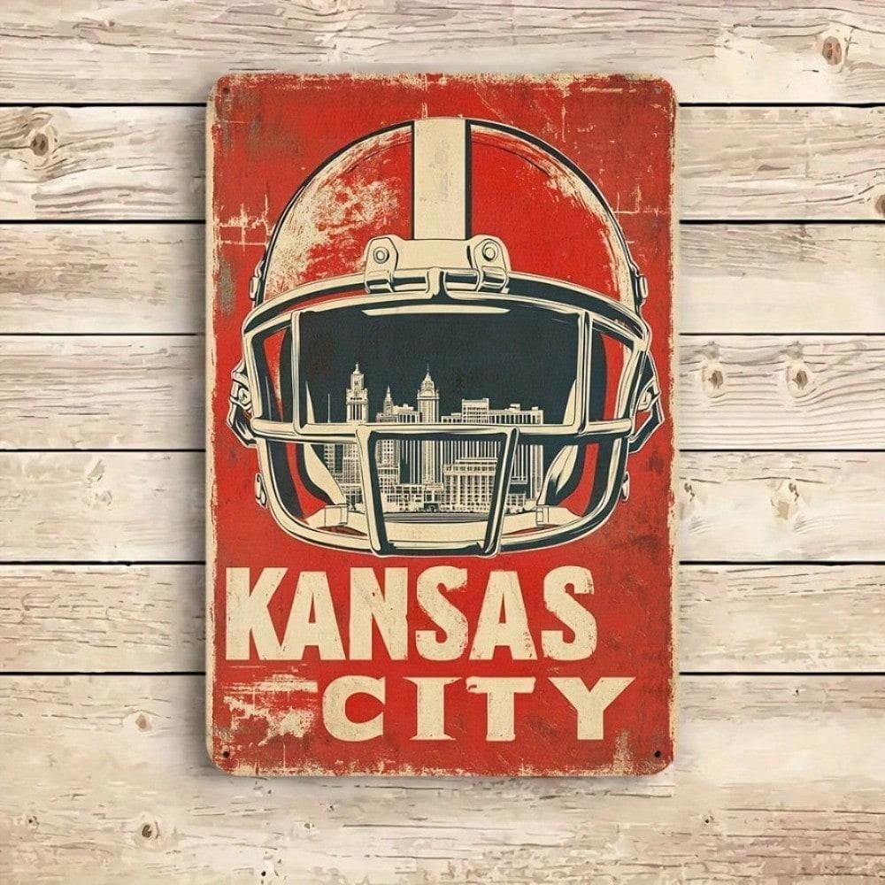 Vintage Kansas City Chiefs Football Helmet Metal Wall Art Sign 12x8 Inch Retro Home Decor Weatherproof Outdoor