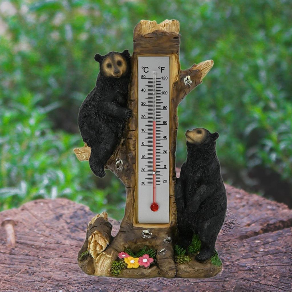 - 【Charm Design】Features an adorable bear holding a tree shaped thermometer, adding a touch of American country design to your garden, patio, balcony, or indoor space