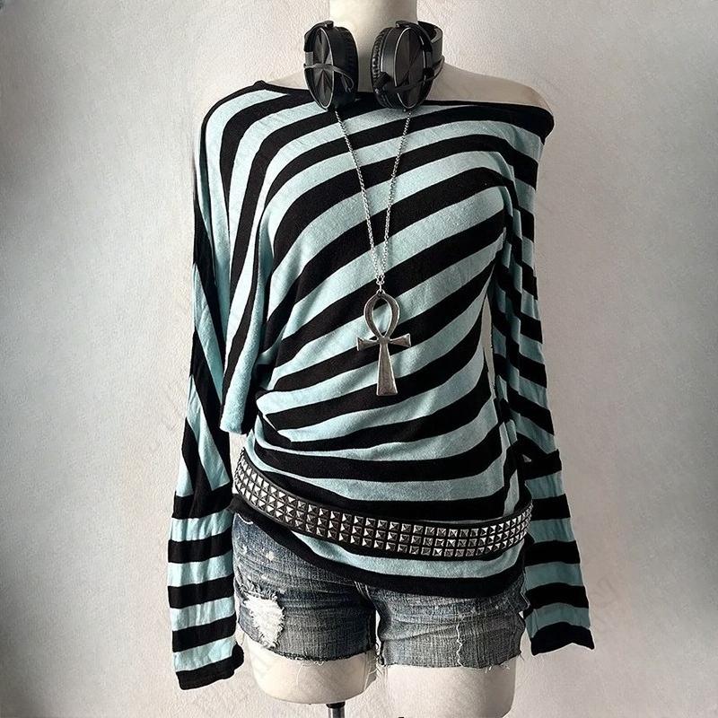 Y2K Streetwear Fashion Harajuku Women Autumn and Winter Long Sleeve 2000s Casual Vintage Striped Sexy Punk Hip Hop Tops Emo Girl