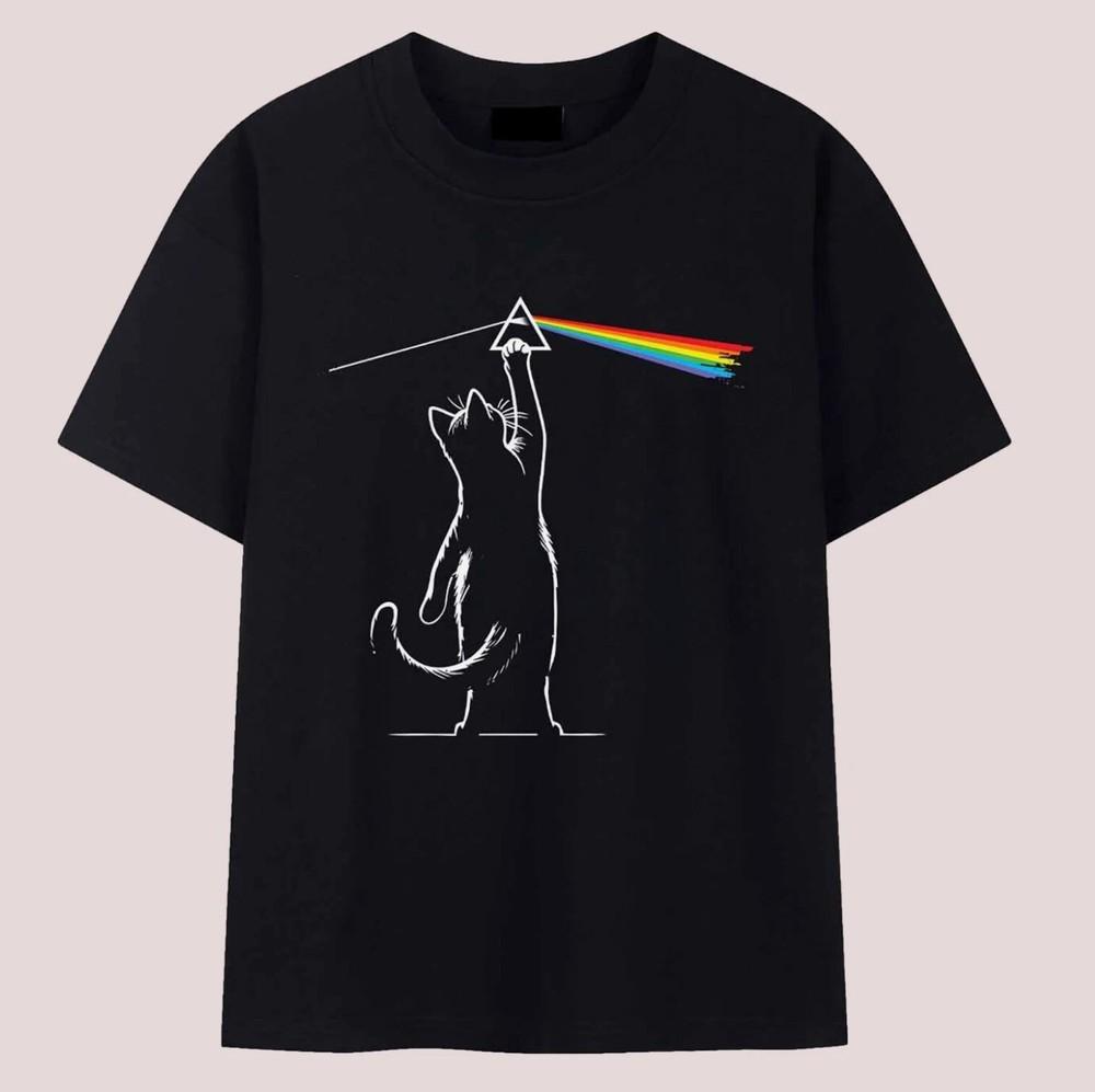 Pink Floyd Cat Dark Side Of The Moon Funny Black Unisex T-shirt Size S-5XL Unisex T-Shirt