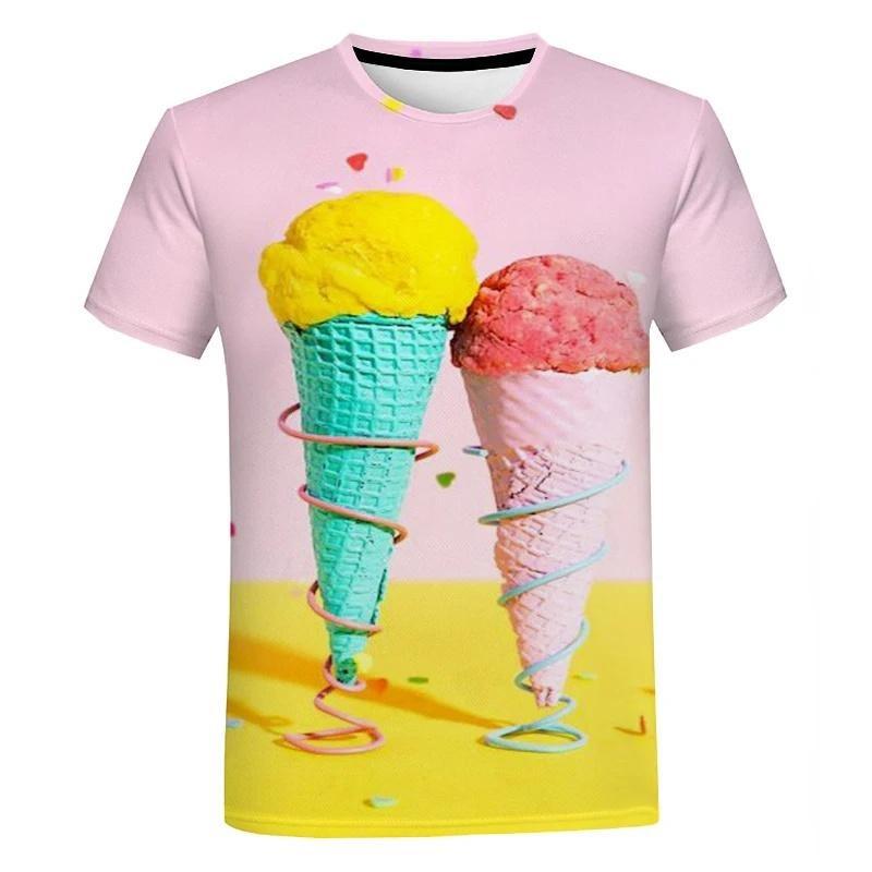 Summer Children Funny Ice Cream 3D Print T-shirt Street Cool Cool Short Sleeve T Shirts Personality Graphic Humour Tee Top