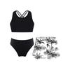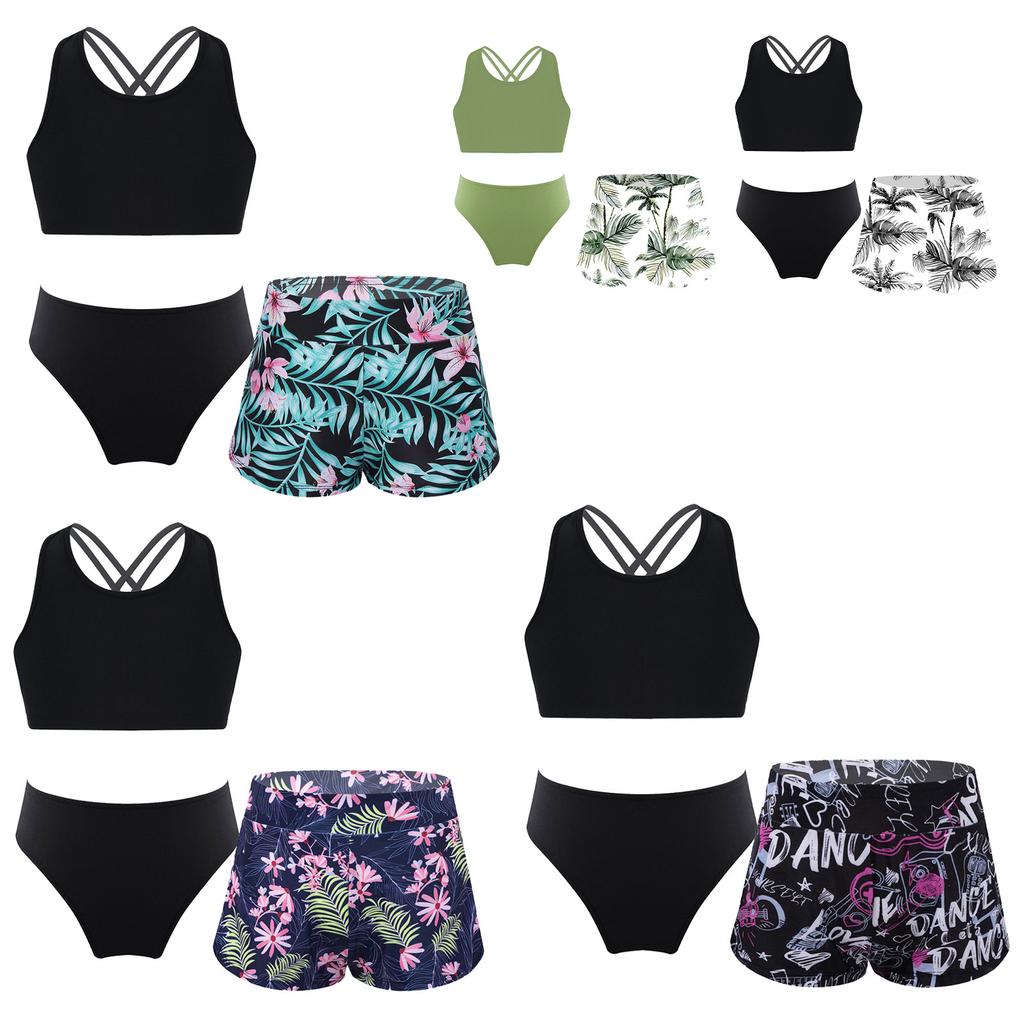 Girls Bathing Suit Set Sleeveless Round Neck Crop Top Wide Elastic Waistband Shorts Beach Swimming Outfit