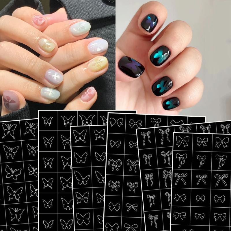Hallow Butterfly Bow Knot Nail Art Sticker Self Adhesive Sticker Manicure Salon Supply French Smudge Template Auxiliary Sticker