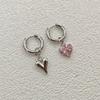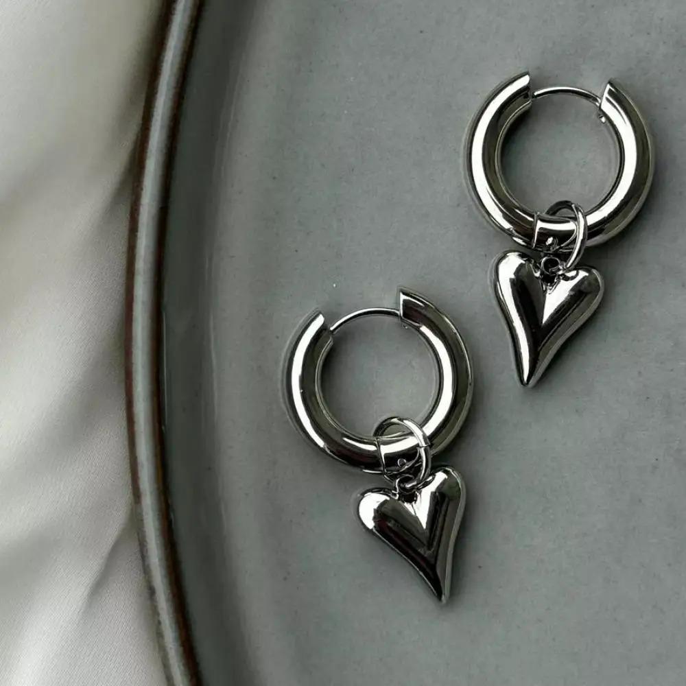 Punk Peach Heart Pendant Earrings for Women Silver Color Simple Fashion Geometric Circular Ear Buckle New Trendy Jewelry Gift