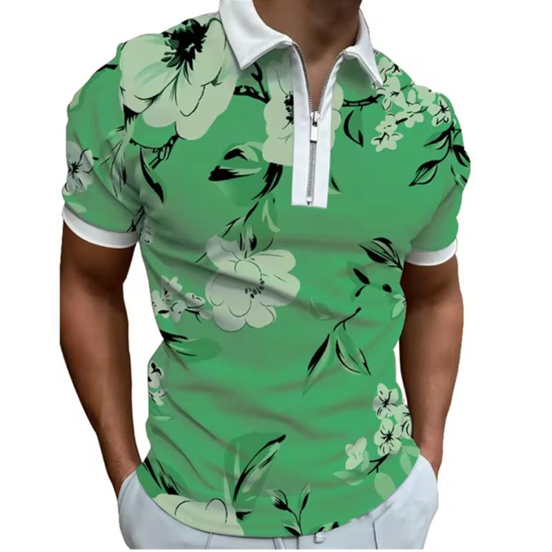 Polo T-shirt Men's Spring and Summer Short Sleeve Casual Polo Shirt Men's Fashion Personality Printed Zipper Lapel